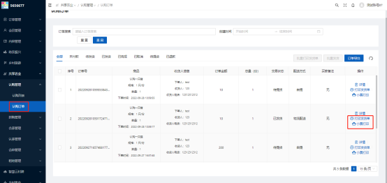 物流配送的發貨方式:在共享農業---各個管理(認購管理、拼購管理、合養管理、認養管理、合種管理)--各個訂單(認購訂單、拼購訂單、合養訂單、認養訂單、合種訂單)下,針對配送方式為物流配送,有發貨、打印發貨單、小票打印三個按鈕。如下所示: