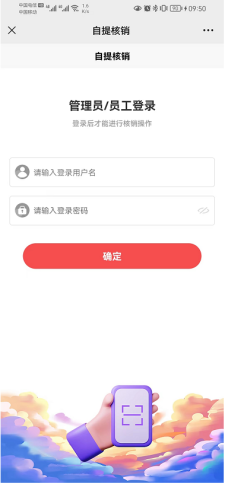 員工掃碼后,需登陸員工帳號,點擊核銷即可。如下所示: