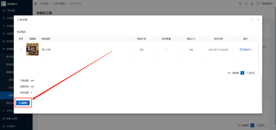 選擇鄉村旅游-農家樂管理-農家樂訂單,點擊某一個訂單的“詳細”;如下所示: