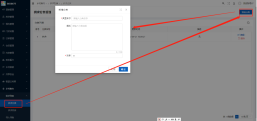 第一步:供求分類。菜單欄的鄉村集市-供求列表-供求分類,點擊右上角的【添加分類】,填寫分類等信息,點擊【確定】。如下所示: