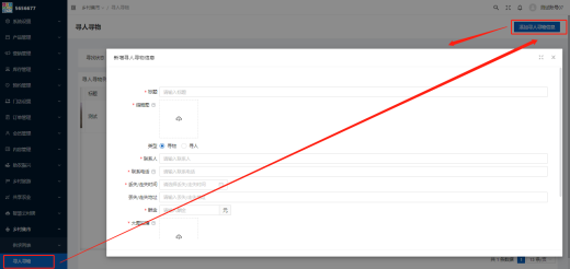 第一步:菜單欄的鄉村集市-尋人尋物,點擊右上角的【添加尋人尋物信息】,填寫標題、圖片、聯系人、聯系電話等信息。點擊【提交數據】。如下所示:
