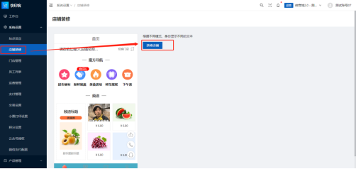 打開管理后臺的菜單欄,系統設置-店鋪裝修,點擊【裝修店鋪】按鈕,會彈出一個新窗口,即進入了輕站編輯器。在輕站編輯器中,可以裝修鄉村店鋪。如下所示:
