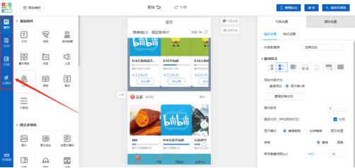 第二步:進入編輯器后,選擇模塊-行業組件,可以看到相應的組件(認購、拼購、合養、認養、合種、租地),點擊組件后,可以在編輯頁生成一個窗口,然后就可以設置對應的信息(例如設置樣式、添加景點、設置顯示模塊等)。如下所示: