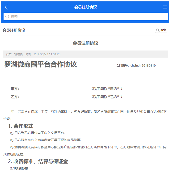 會員注冊協(xié)議則是給到會員注冊時閱讀的協(xié)議內(nèi)容,一旦注冊,默認(rèn)已經(jīng)了解本協(xié)議,您可根據(jù)需要,編寫修改相應(yīng)的內(nèi)容。如下圖所示:
