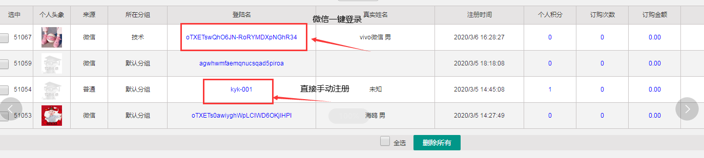 注冊會員管理是記錄前臺注冊或者是用微信授權(quán)登錄的賬號,并可對會員進行分組管理,編輯會員資料、修改密碼、郵箱、刪除會員等操作。如下圖所示: