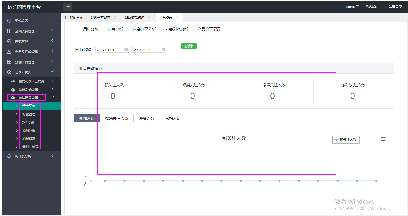 7.3:關(guān)于微信高級功能管理,如下為點擊該板塊后的相關(guān)數(shù)據(jù)分析統(tǒng)計說明,可自行對應(yīng)查看,如下圖所示: