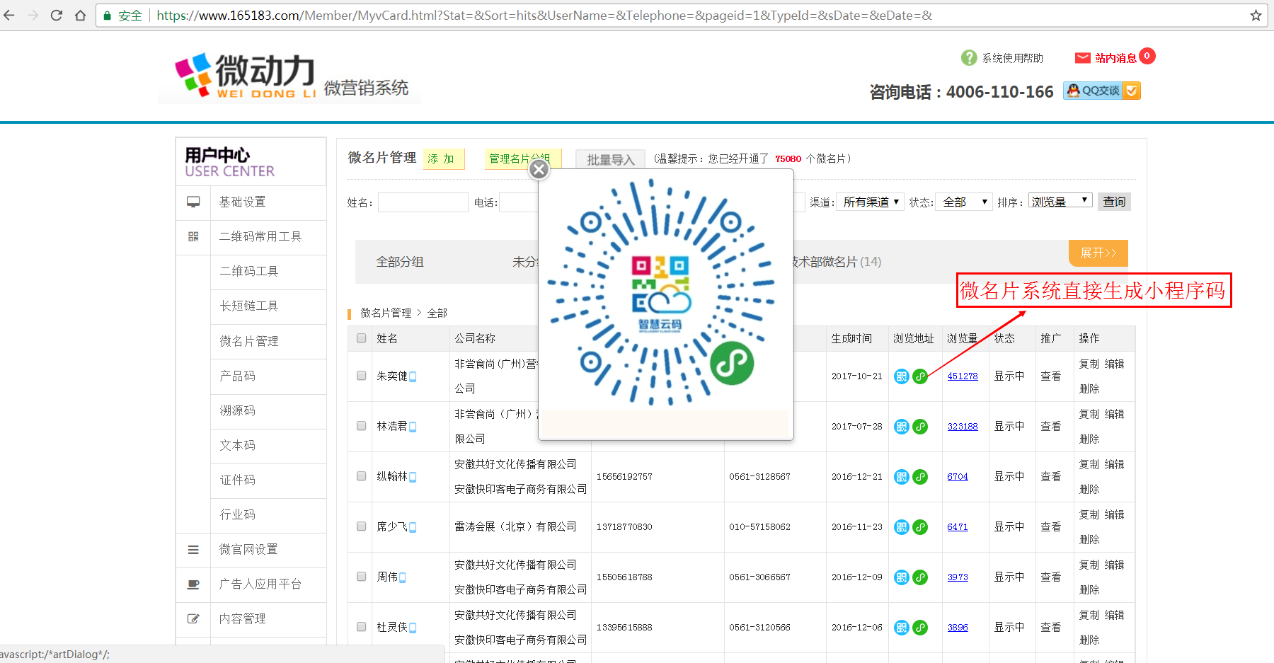 1、微名片系統增加小程序版。