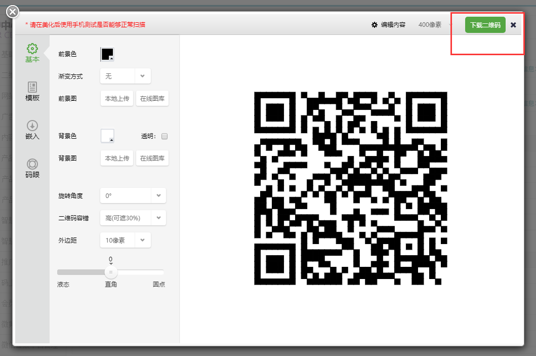 或者 高級(jí)美化中,點(diǎn)擊下載二維碼