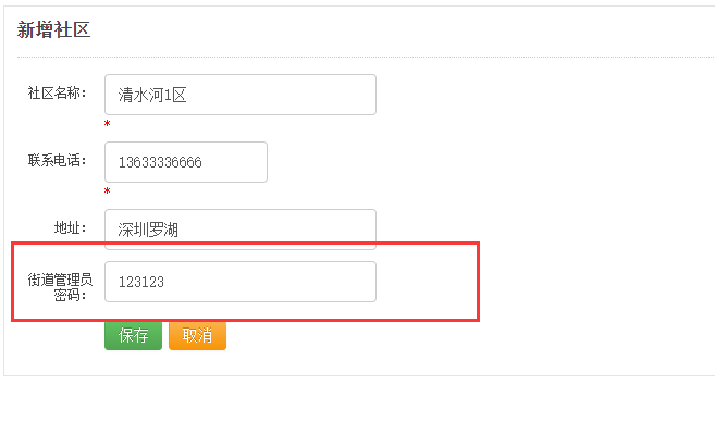 點擊 新增社區,進入社區資料添加頁面,需要注意的是,每個社區需要設置一個管理密碼,以供社區管理員在查車貼碼時確認身份用。
