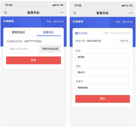 如果掃碼人為車主,則需要驗證車主手機號碼,驗證成功后,車主可以此管理及更新個人資料信息。