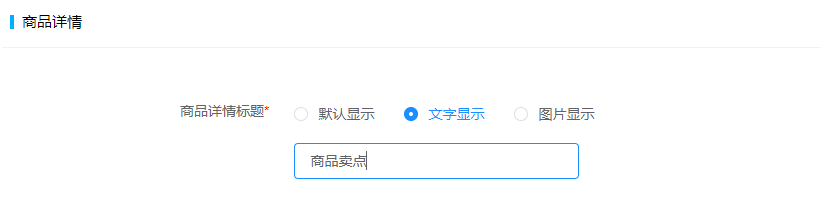 3. 微商城:商品詳情 標(biāo)題 項(xiàng),新增可自定義,用戶可自定文字或圖片;
