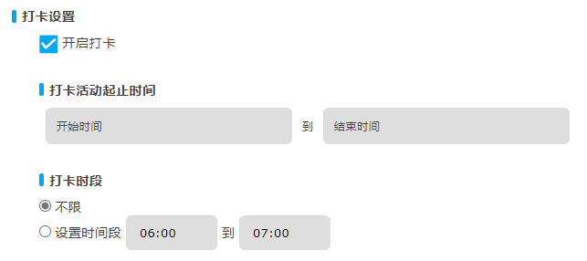 9、增加打卡功能,管理員可設置表單在某一日期段內,定時重復打卡,如下圖示,如圖: