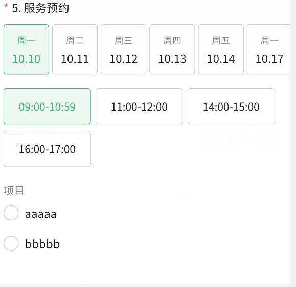 10、增加服務預約功能,可設置預約項目,預約日期,預約時間,如圖: